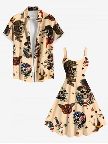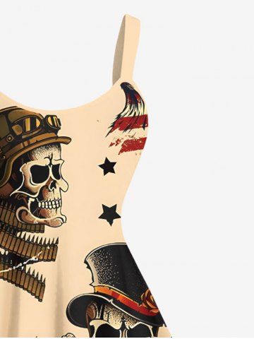 Plus Size Skull Pirate Patriotic American Flag Rose Flower Print Hawaii Cruise A Line Tank Dress - Light Coffee - S