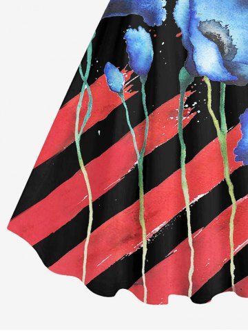 Plus Size Watercolor Ombre Floral Striped Painting Patriotic American Flag Print Backless A Line Tank Dress - Black - Xs