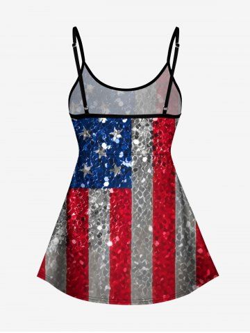 American Flag Swimwear > Glitter Sequins Patriotic American Flag Print Boyleg Tankini Swimsuit (Adjustable Shoulder Strap)