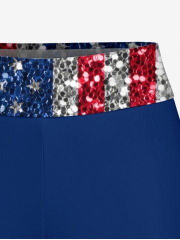 Glitter Sequins Patriotic American Flag Print Boyleg Tankini Swimsuit (Adjustable Shoulder Strap) - Blue - L