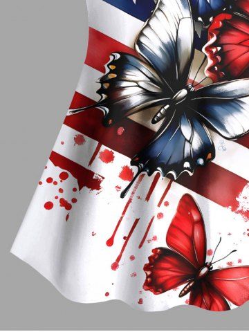 Painting Splatter Patriotic American Flag Butterfly Print Hawaii Tankini Top(Adjustable Shoulder Strap) - White - 4x