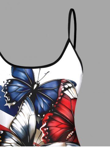 Painting Splatter Patriotic American Flag Butterfly Print Hawaii Tankini Top(Adjustable Shoulder Strap) - White - 6x