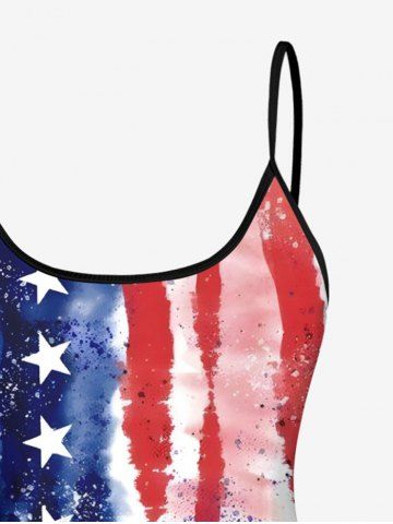 Patriotic American Flag Print Tankini Top(Adjustable Shoulder Strap) - Blue - M