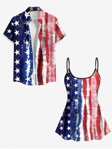 Patriotic American Flag Print Tankini Top(Adjustable Shoulder Strap) - Blue - 4x