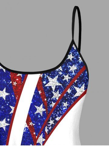 Plus Size Patriotic American Flag Coconut Tree Print Hawaii Tankini Swimsuit - Blue - S