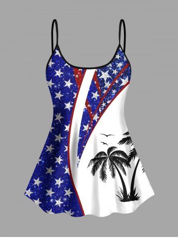 American Flag Swimwear > Plus Size Patriotic American Flag Coconut Tree Print Hawaii Tankini Swimsuit