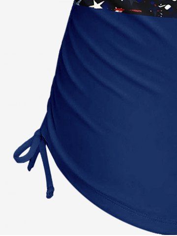 Plus Size Patriotic American Flag Graffiti Print Halter Cinched Boyleg Tankini Swimsuit - Deep Blue - 5x