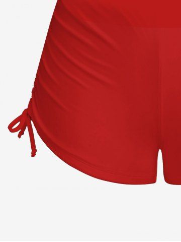 Plus Size Patriotic American Flag Print Halter Twist Cinched Tankini Swimsuit - Red - M