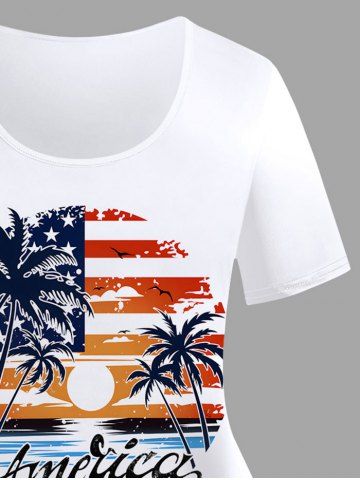Plus Size Coconut Tree Sun Seascape Print Hawaii T-shirt - White - S