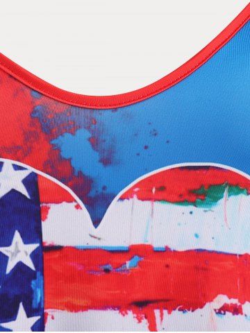 Plus Size & Curve Patriotic American Flag Print Tank Top - Red - L