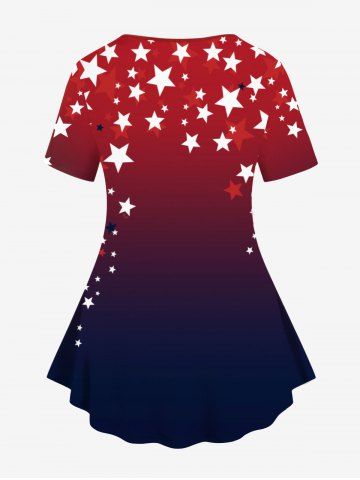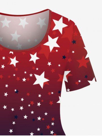 Plus Size Dip Dye Ombre Patriotic American Flag Print T-shirt - Red - M
