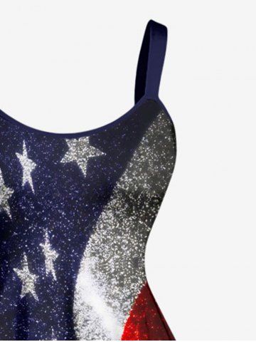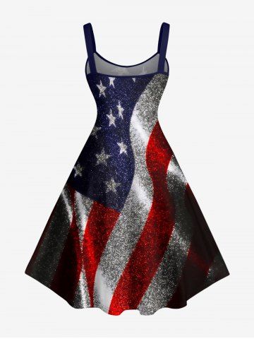 American Flag Tops > Plus Size Glitter Patriotic American Flag Print A Line Dress