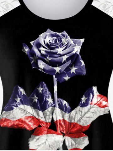 Plus Size Lace Panel Patriotic American Flag Rose Print Tank Top
