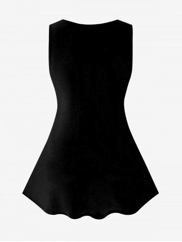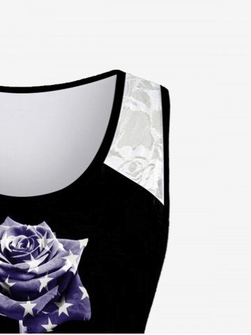Plus Size Lace Panel Patriotic American Flag Rose Print Tank Top - Black - M | Us 10