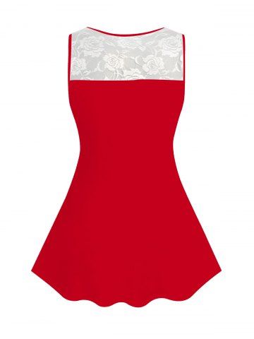Plus Size Lace Panel Patriotic American Flag Rose Print Tank Top