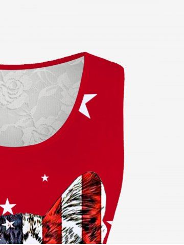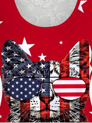 Plus Size Patriotic American Flag Cat Graphic Lace Panel Tank Top - Red - 2x | Us 18-20