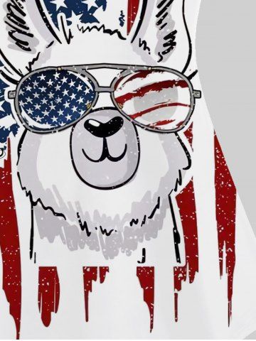 Plus Size Rabbit Patriotic American Flag Print Cami Top (Adjustable Shoulder Strap) - White - M