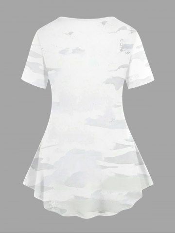 Plus Size Skulls Flower Patriotic American Flag Print T-shirt - White - 6x