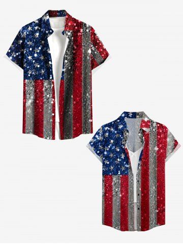 Women's Glitter Sequins Patriotic American Flag Print Shirt - Blue - L