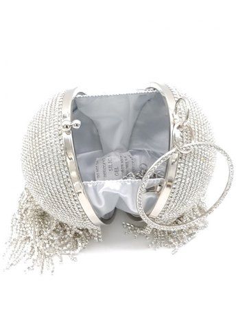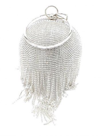 Ball Shape Rhinestones Minaudière Clutches Evening Party Bag - Silver