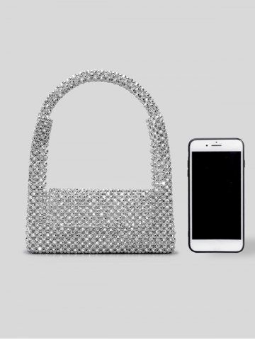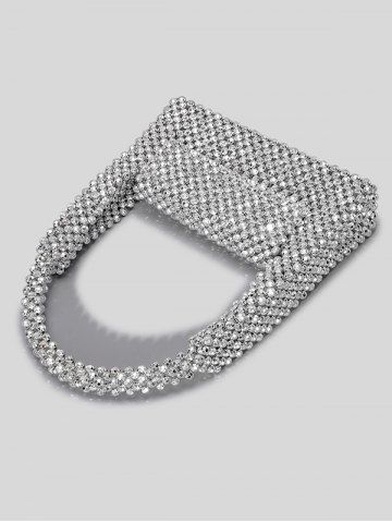 Beading Foldover Evening Party Shoulder Bag - Silver