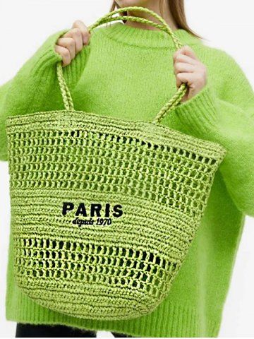 Women's Bags > Vacation Beach Letter Embroidered Woven Design Straw Tote Bag