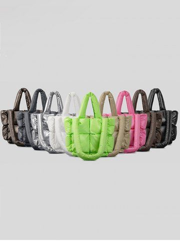 Women's Bags > Women's Daily Solid Color Strappy Quilted Padded Puffer Design Down Shoulder Tote Bag