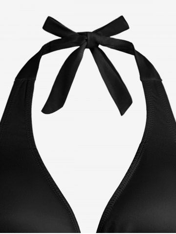 Fashion Plunging Solid Halter Backless Bikini Top - Black - 2xl