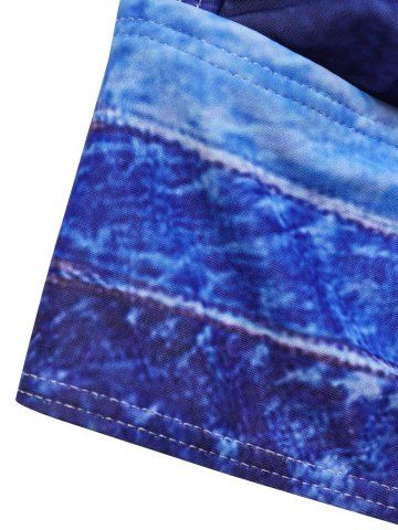 Faux Denim 3D Print Padded Halter Swim Top - Blue - S