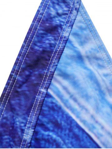 Faux Denim 3D Print Padded Halter Swim Top - Blue - L