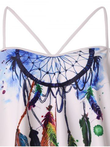 Feather Dreamcatcher Print Padded Spaghetti Strap Flounce Swim Top - White - Xxl