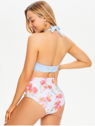 Bikinis > Flower Print Moulded Halter High Rise Bikini Swimwear Set