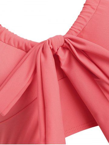Marine Life Knot Ruched High Waist Bikini Swimwear - Orange - S