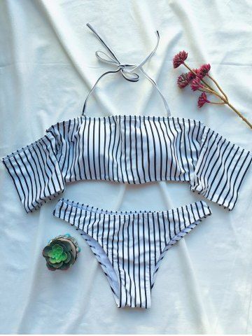 Striped Off The Shoulder Bikini Set - White - S