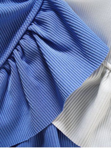 Two Tone Flounce Mock Button High Waist Bikini Swimsuit - Blue - L