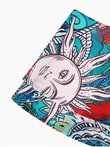Blouses > Celestial Sun Floral Paisley Allover Print Cold Shoulder Layered Flounce Blouse