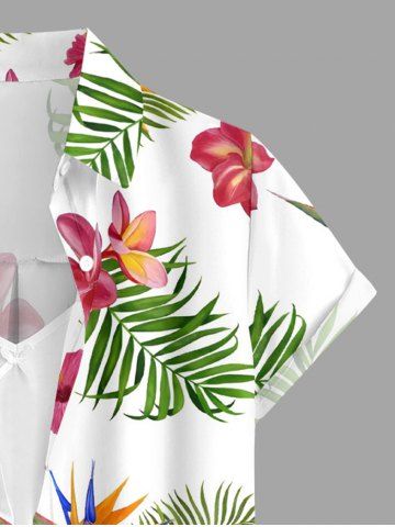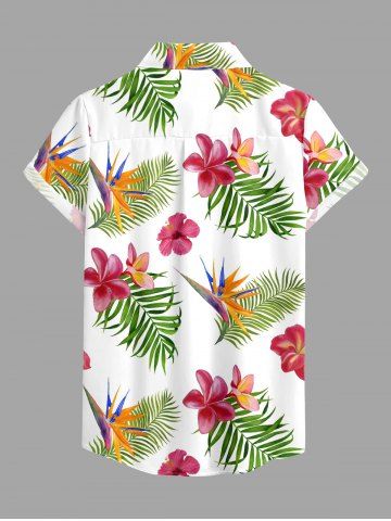 Hibiscus Flowers Tropical Leaf Print Buttons Pocket Women Hawaii Shirt - White - 2xl