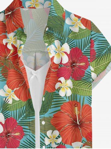 Blouses > Plus Size Women Hibiscus Flower Tropical Leaf Print Buttons Pocket Hawaii Shirt