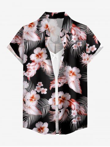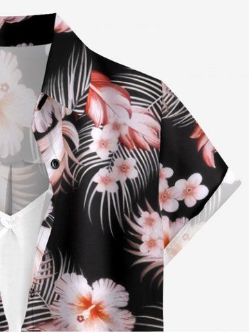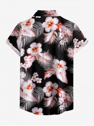 Tropical Leaf Hibiscus Flower Print Hawaii Women Shirt - Black - 3xl