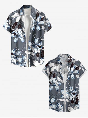 Women Flowers Leaf Print Buttons Pocket Hawaii Shirt - Light Gray - L