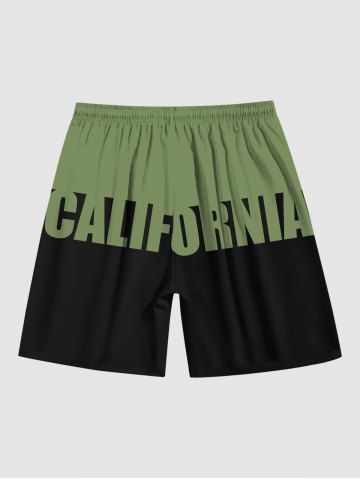 Board Shorts > Men's California Letters Colorblock Print Pocket Beach Shorts