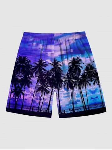 Men's Coconut Tree Cloud Sea Print Pocket Beach Shorts - Multi-a - 7xl