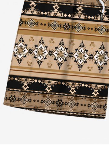 Men's Ethnic Floral Pattern Print Beach Shorts - Coffee - 8xl