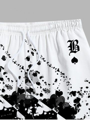 Men's Minimalist Stye Paint Splatter Colorblock Spades Printed Short Sleeve T-shirt and Drawstring Shorts Plus Size Summer Outfit
