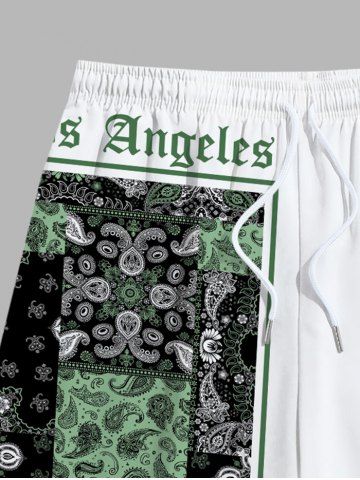 Men's Letters Paisley Floral Geometric Plaid Print Drawstring Shorts - White - L