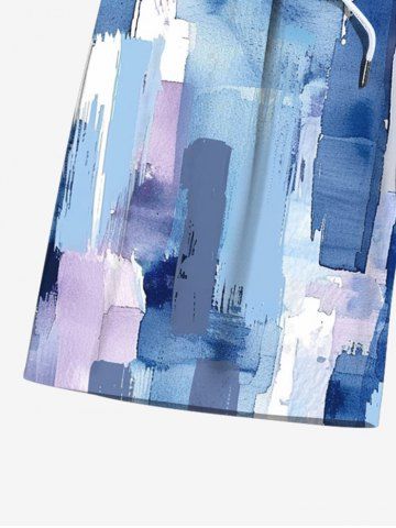 Men's Minimalist Style Watercolor Art Random Brushstroke Print Beach Shorts - Blue - 2xl