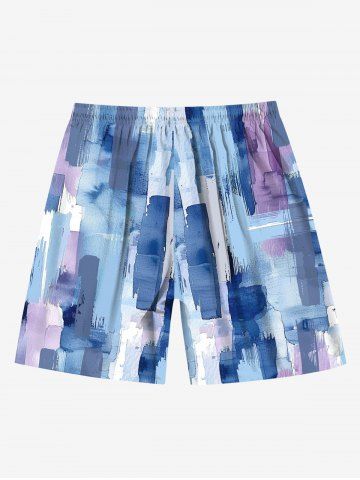 Men's Minimalist Style Watercolor Art Random Brushstroke Print Beach Shorts - Blue - 4xl