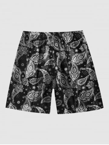 Hawaii Men's Paisley Cashew Flowers Print Drawstring Shorts - Black - 7xl