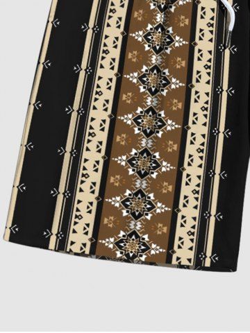 Hawaii Men's Striped Floral Print Drawstring Beach Shorts - Coffee - Xl