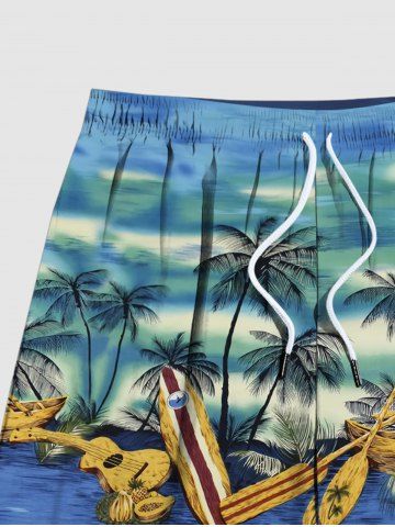 Plus Size Coconut Tree Boat Sea Guitar Print Hawaii Beach Shorts - Blue - M